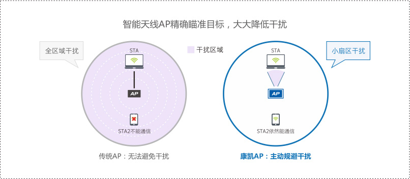 开云官方端网站登录入口科技的智能AP动态波束精确瞄准,大幅降低电磁干扰,同时能自动探测、发现有效信号源和干扰源,通过智能化的信号靶向控制,瞄准有效信号源,避开干扰源。根据用户位置和接收灵敏度,无线信号自动调整形成自适应反馈系统,利用各个移动用户间信号空间特征的差异,通过阵列天线技术在同一信道上接收和发射多个移动用户信号而不发生相互干扰,使Wi-Fi信号传输更有效。在复杂环境下能提升性能10倍以上。普通AP已无法使用,智能AP能应付自如。