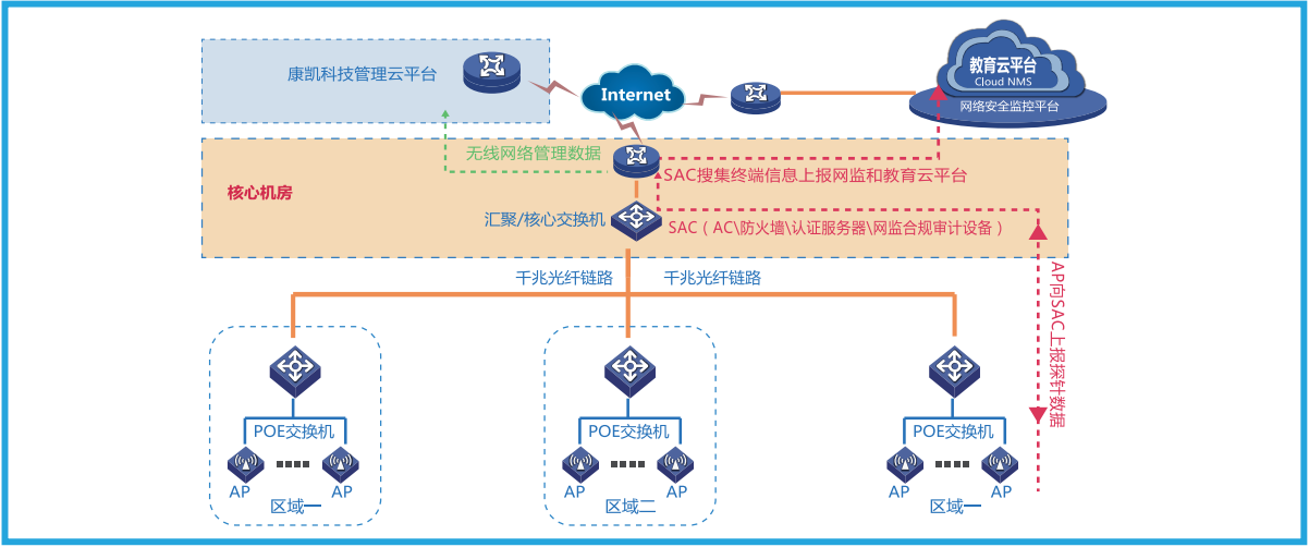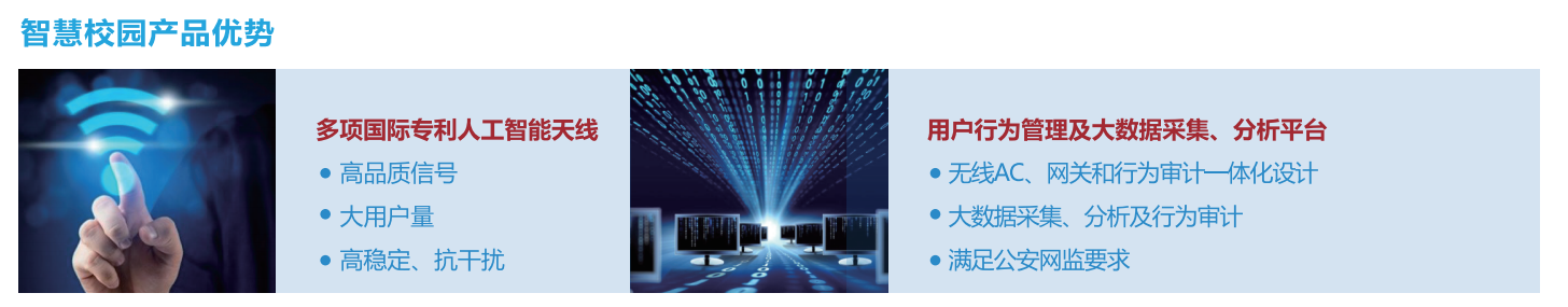 开云官方端网站登录入口科技提供的智慧校园应用场景,包括AC、网关和行为审计一体化设计,减少投入并简化管理,同时提供学生行为管理及大数据采集功能,为学校和家长及时、精准辅导学生提供了丰富依据。